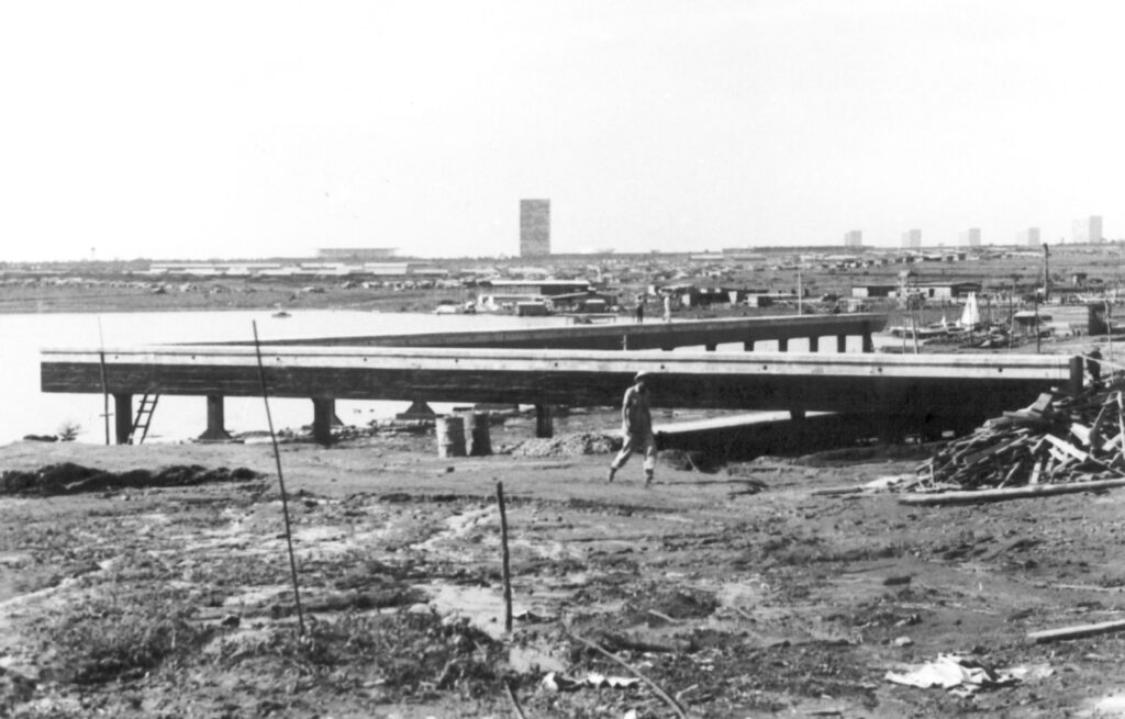 Antes mesmo das águas do Lago Paranoá atingirem sua cota definitiva, o Iate Clube de Brasília já se preparava para receber suas primeiras embarcações. Em 1960, foi construído, em terreno seco, um cais em formato de \"L\", com 300 metros de extensão, antecipando a chegada do lago ao nível mil, previsto para sua estabilização.