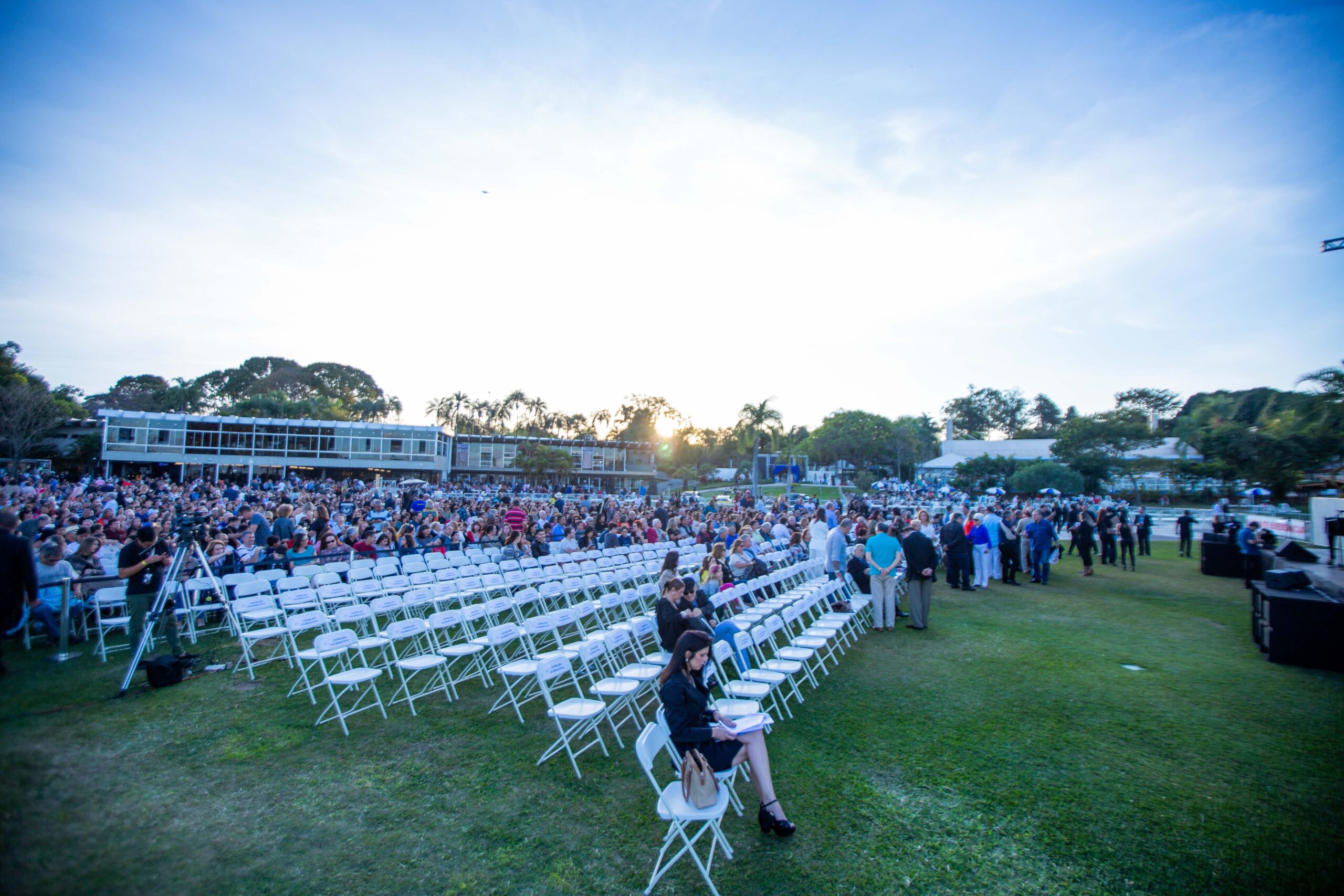 A 5ª edição do Iate in Concert aconteceu no dia 17 de agosto de 2019, reunindo música clássica de alta qualidade e uma forte ação solidária. O evento, realizado pelo Iate Clube de Brasília, contou com a apresentação da Orquestra Sinfônica do Teatro Nacional Claudio Santoro, sob a regência do maestro Claudio Cohen, proporcionando um espetáculo inesquecível ao pôr do sol, às margens do Lago Paranoá.