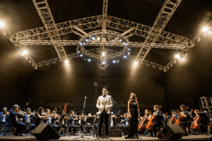 O Iate in Concert 2022, realizado no dia 13 de agosto, trouxe mais uma edição memorável ao Iate Clube de Brasília, reafirmando seu prestígio como um dos maiores eventos culturais da capital. Sob a regência do maestro Cláudio Cohen, a Orquestra Sinfônica do Teatro Nacional Cláudio Santoro encantou o público com o tema \"Da Ópera aos Musicais\", apresentando performances marcantes das sopranos Marina Melaranci e Manuela Korossy, além do tenor Thiago Arancam.