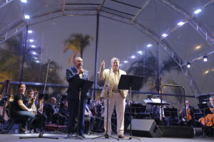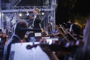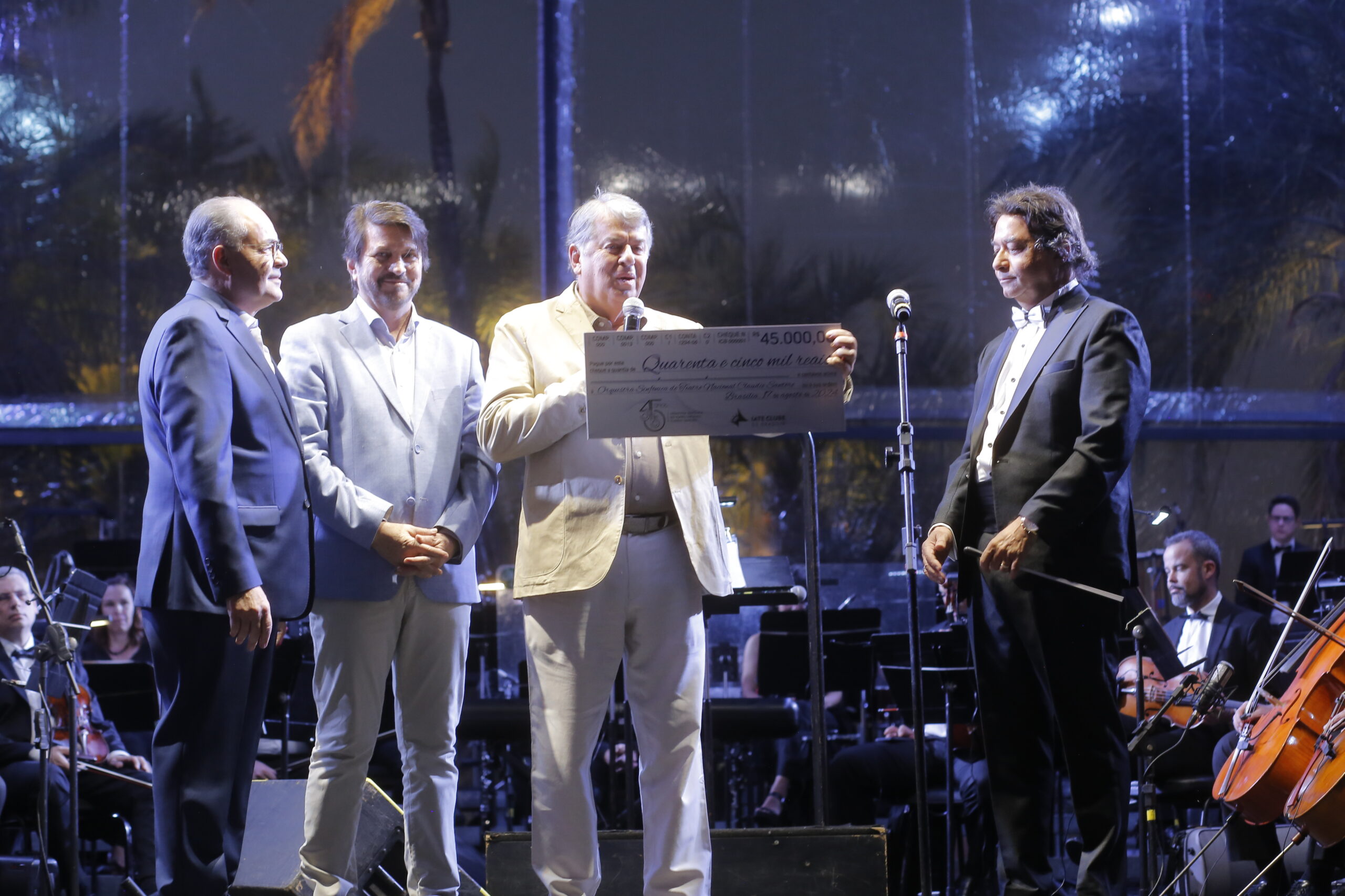 A noite foi marcada por apresentações memoráveis, com as participações especiais de Sara Sarres e Saulo Vasconcelos, que encantaram o público com suas performances. O evento celebrou os 45 anos da Orquestra, os 25 anos de carreira de Saulo Vasconcelos e marcou o retorno de Sara Sarres aos palcos, proporcionando momentos inesquecíveis aos espectadores.