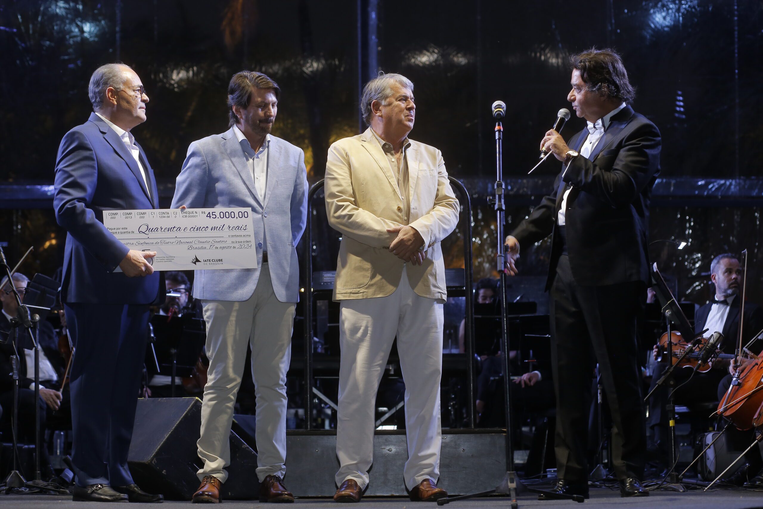 O Iate in Concert 2016 marcou mais uma edição de sucesso do tradicional evento musical do Iate Clube de Brasília, reunindo sócios e convidados em uma noite de celebração à música e à cultura. Realizado na Orla do Clube, o concerto contou com a apresentação da Orquestra Sinfônica do Teatro Nacional Claudio Santoro, sob a regência do maestro Cláudio Cohen, trazendo um repertório emocionante que transitou entre grandes clássicos da música erudita e sucessos populares. Com uma estrutura impecável, cenário deslumbrante e uma sonoridade envolvente, o evento reforçou o compromisso do Clube em promover experiências culturais de alto nível. Além disso, teve um impacto social significativo, destinando parte da arrecadação à doação de cestas básicas para instituições beneficentes. O Iate in Concert 2016 consolidou-se, mais uma vez, como um dos eventos mais prestigiados do calendário cultural de Brasília.