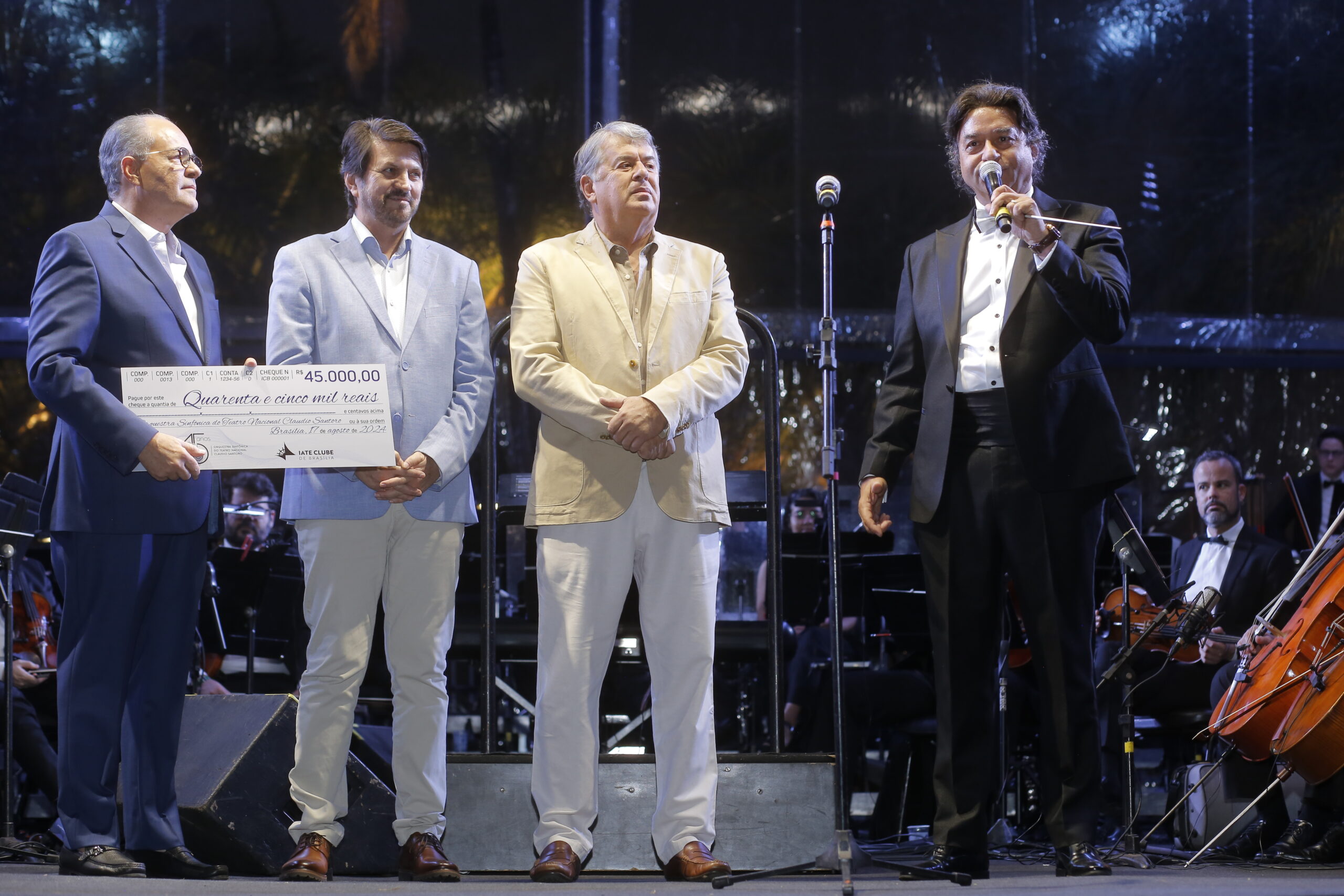 O Iate in Concert 2024, realizado em 17 de agosto, foi um grande sucesso, consolidando-se como um dos principais eventos culturais de Brasília. Com o tema \"Romance Sinfônico – Clássicos Universais\", o concerto contou com a Orquestra Sinfônica do Teatro Nacional Cláudio Santoro, sob a regência do maestro Cláudio Cohen, e apresentações especiais de Sara Sarres e Saulo Vasconcelos. Além do espetáculo musical, o evento teve um impacto social significativo, arrecadando um recorde de 27 toneladas de cestas básicas, beneficiando 21 instituições do Distrito Federal. Com um público de mais de 2.500 pessoas, o Iate Clube de Brasília agradece aos patrocinadores, parceiros e voluntários que contribuíram para mais uma edição memorável, unindo cultura e solidariedade.